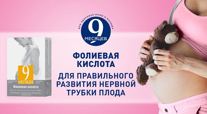 «Выбор препаратов фолиевой кислоты, предлагаемый в аптеке, очень велик, однако не все они содержат подходящую для будущих мам дозировку. Препарат из линейки «9 месяцев» содержит 400 мкг высокоочищенной формы фолиевой кислоты в 1 таблетке, что является достаточным для компенсации физиологической потребности в фолиевой кислоте у беременных женщин и безопасным для малыша».