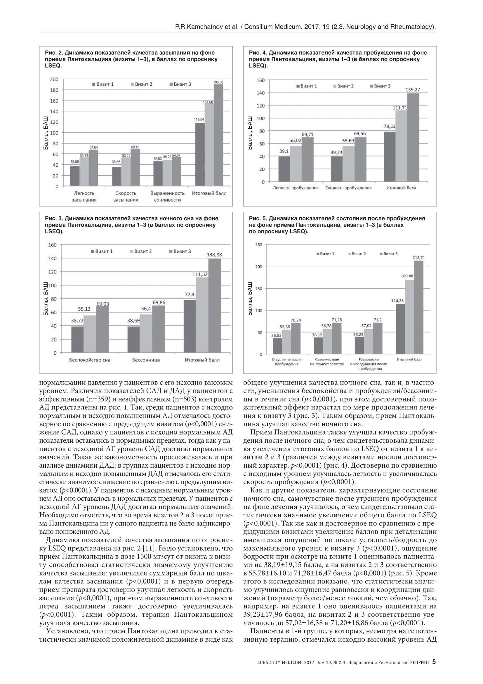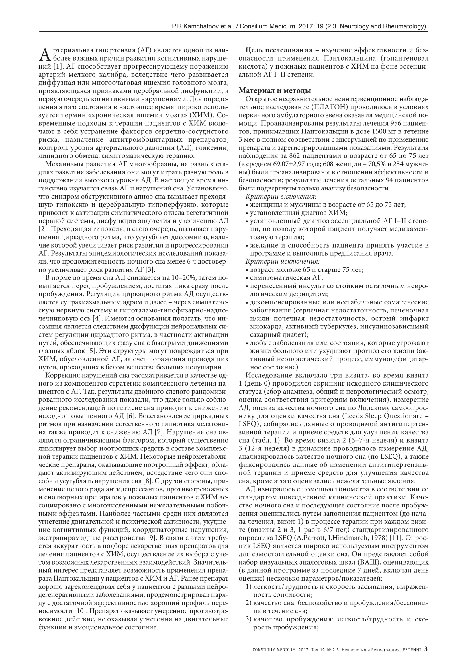 Показатели артериального давления и качество сна у пожилых пациентов с хронической ишемией головного мозга и артериальной гипертензией на фоне лечения пантокальцином (гопантеновая кислота). Результаты неинтервенционной наблюдательной программы ПЛАТО