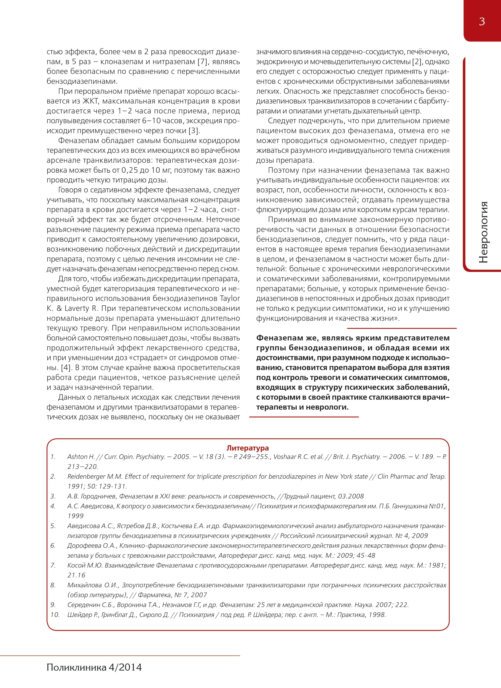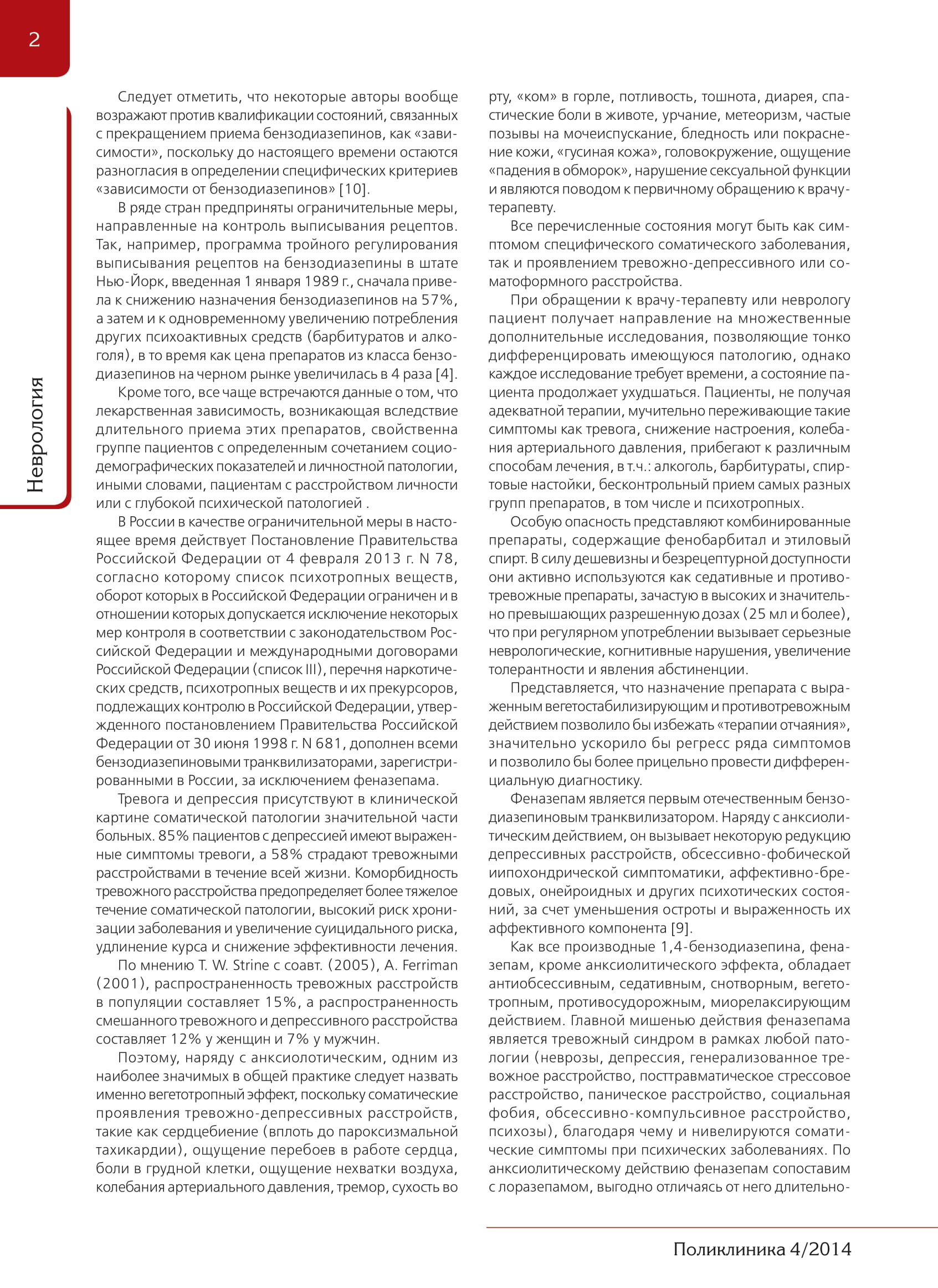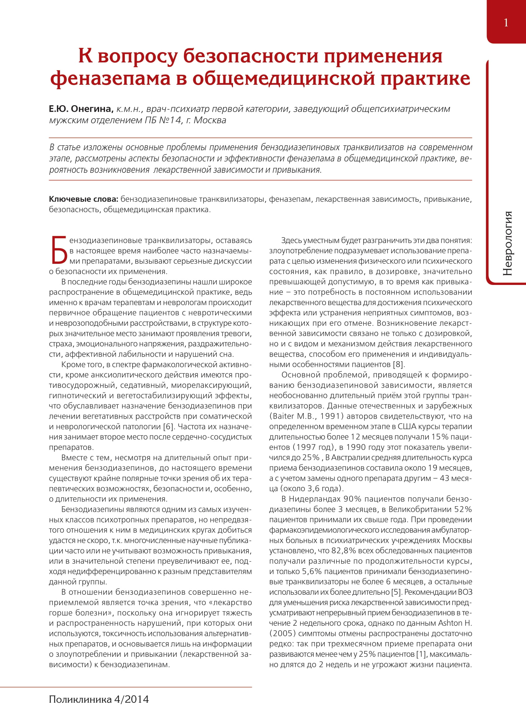 / К вопросу безопасности применения феназепама в общемедицинской практике