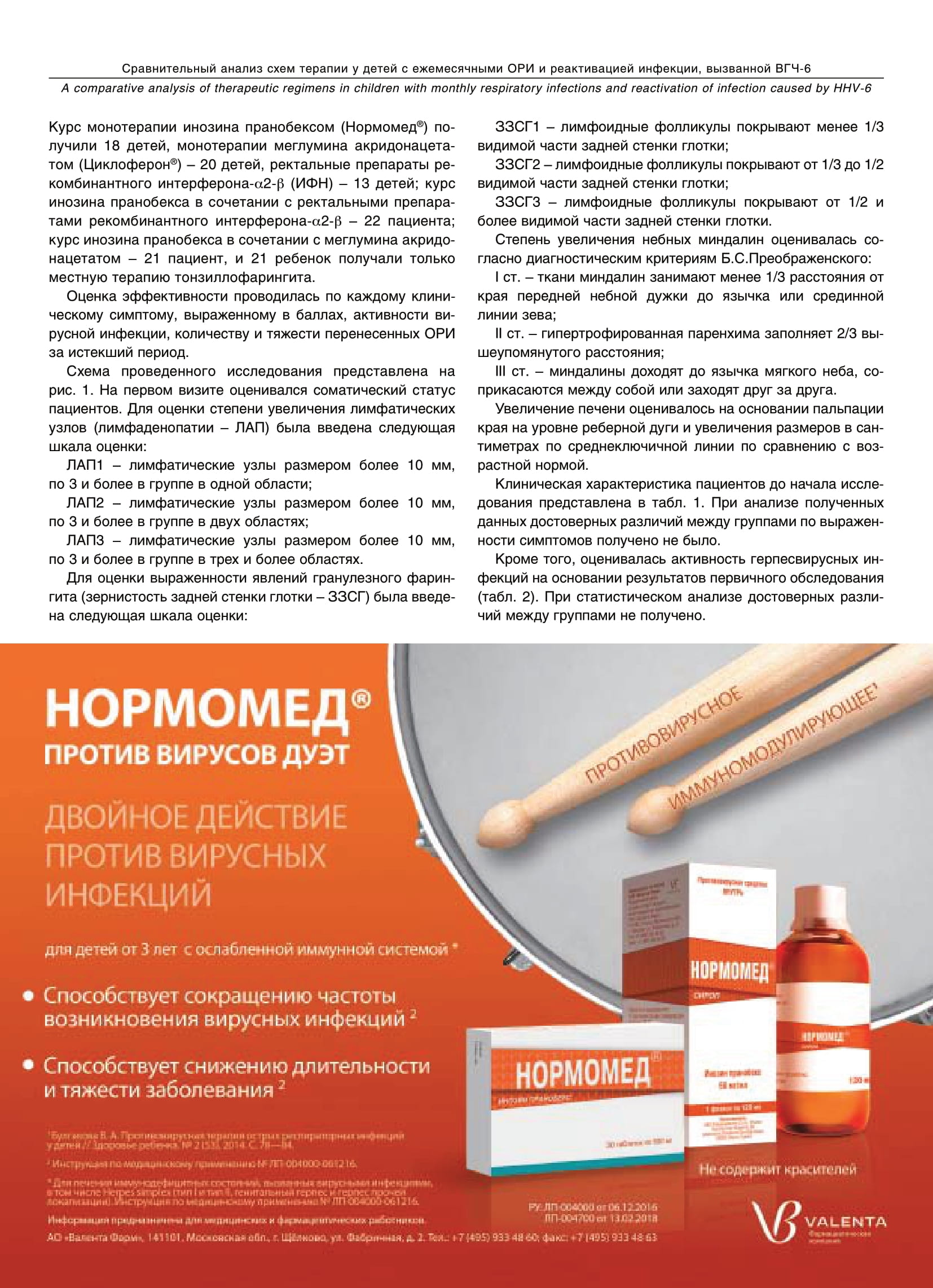 Сравнительный анализ схем терапии у детей с ежемесячными респираторными заболеваниями и реактивацией инфекции, вызванной вирусом герпеса человека 6-го типа