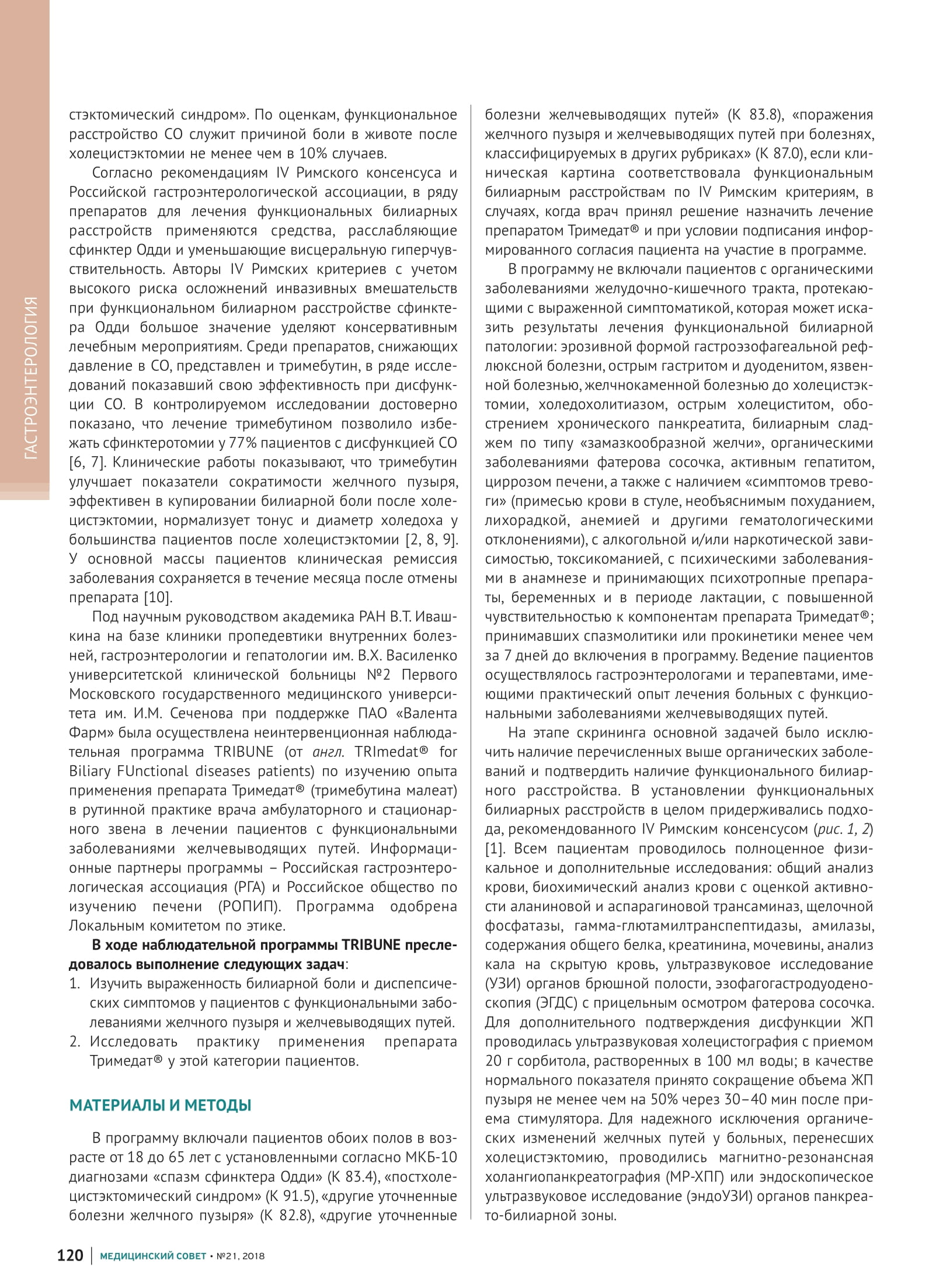/ Тримебутина малеат в лечении функциональных билиарных расстройств: РЕЗУЛЬТАТЫ НАБЛЮДАТЕЛЬНОГО ИССЛЕДОВАНИЯ TRIBUNE