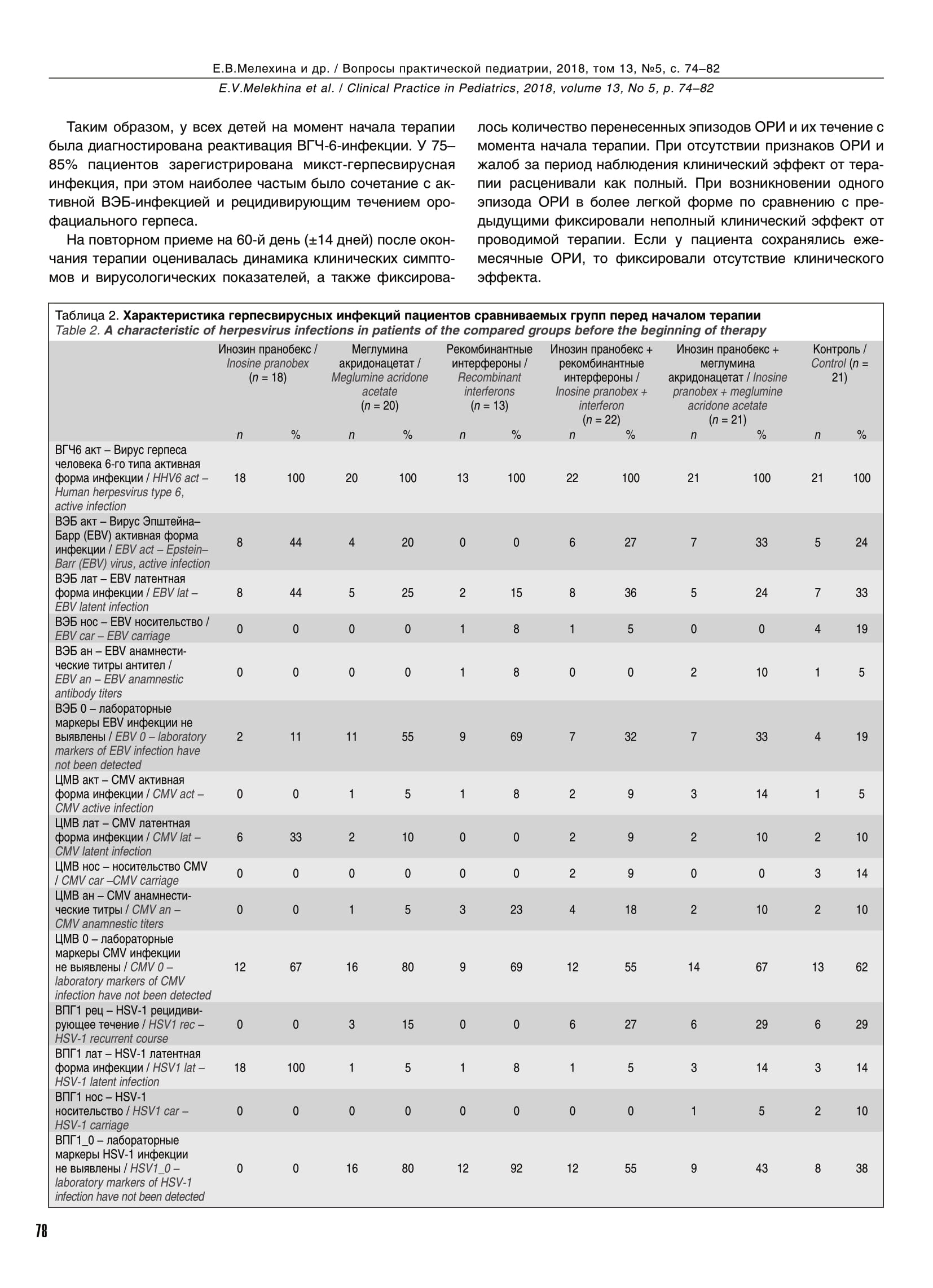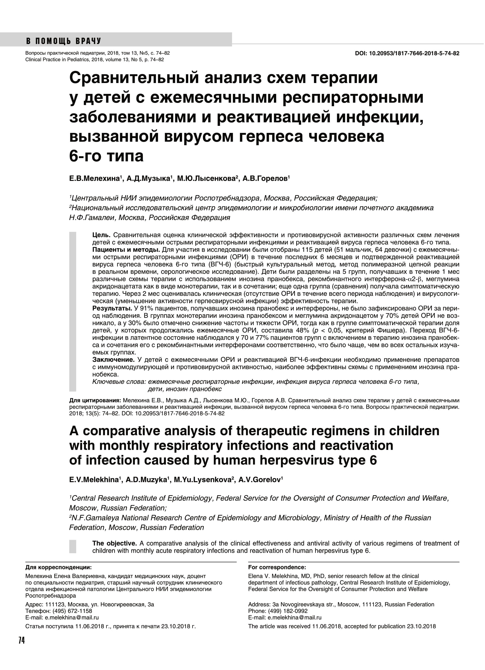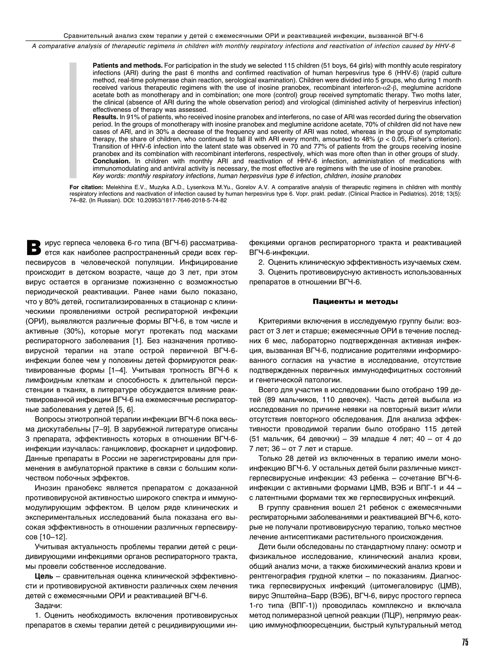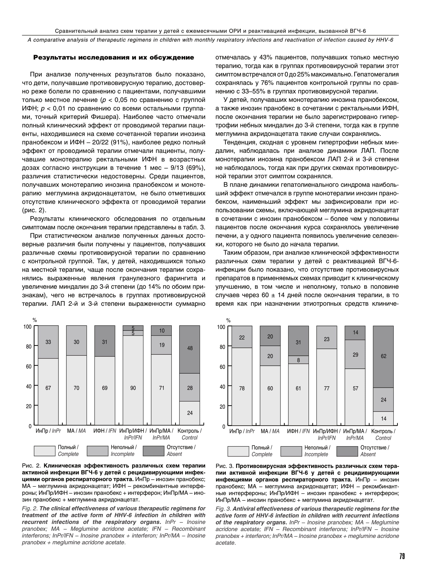Сравнительный анализ схем терапии у детей с ежемесячными респираторными заболеваниями и реактивацией инфекции, вызванной вирусом герпеса человека 6-го типа