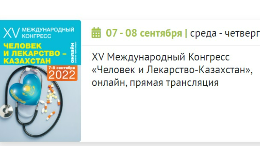 07 - 08 сентября 2022 года пройдет XV Международный Конгресс "Человек и Лекарство-Казахстан", онлайн, прямая трансляция.