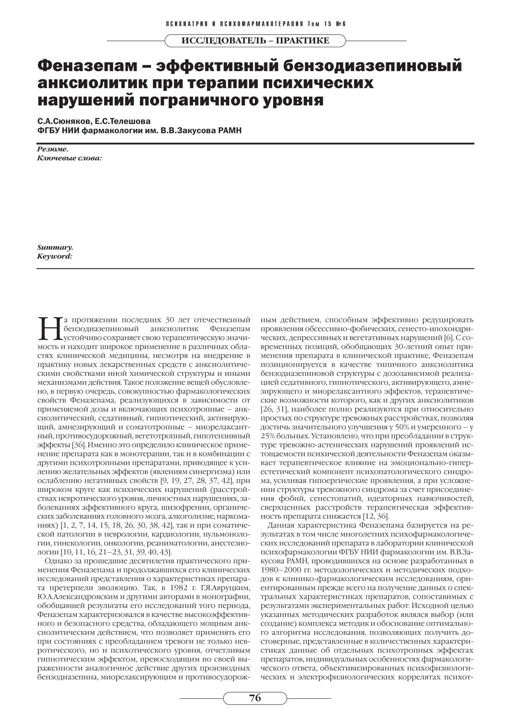 Феназепам – эффективный бензодиазепиновый анксиолитик при терапии психических нарушений пограничного уровня