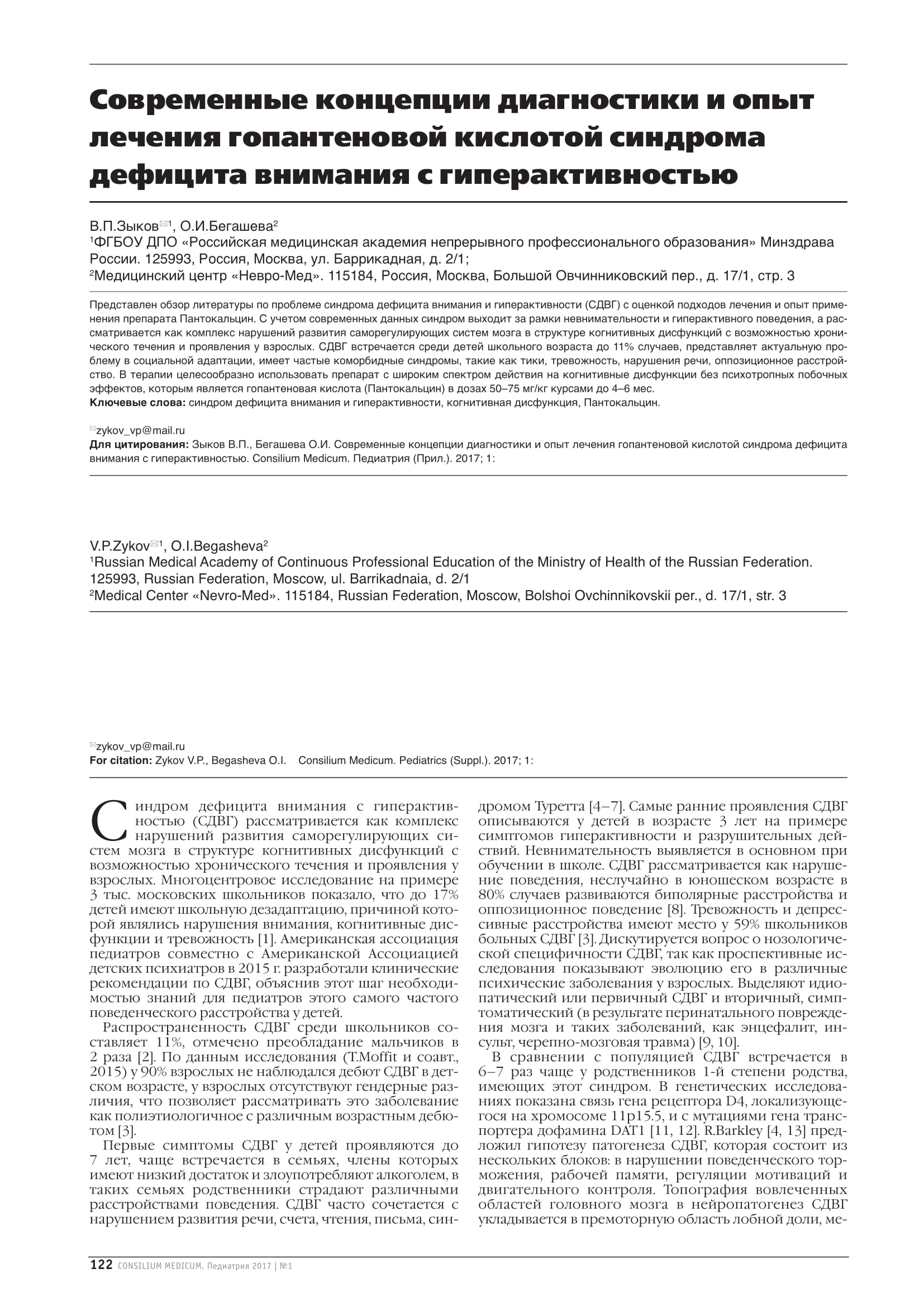 Современные концепции диагностики и опыт лечения гопантеновой кислотой синдрома дефицита внимания с гиперактивностью