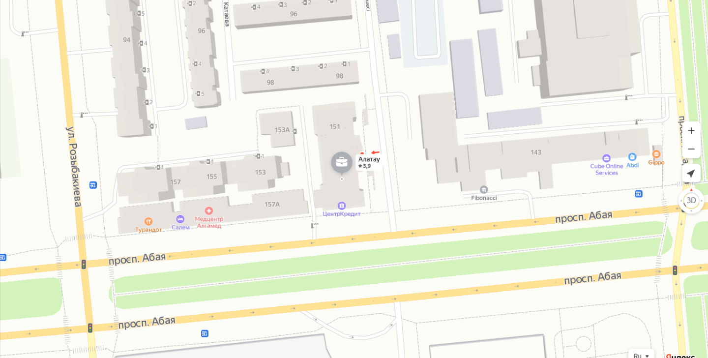Алмалинский район, проспект Абая, 151;